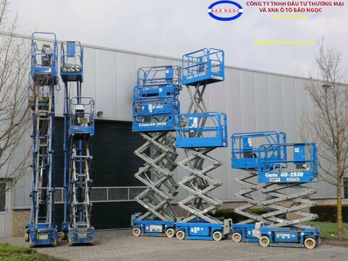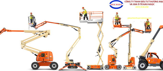 Công ty XNK ô tô Bảo Ngọc bán và cho thuê xe nâng người có độ cao từ 6, 8, 10, 12m, 14m, 16m, 18m, 20m, 22m...đến 50m với các dạng xe nâng người cắt kéo, thang nâng người, Zboom, Boom, xe tải cẩu gắn giỏ nâng người các hãng Haulotte, Genie, JLG, Dasan, Palfingger...